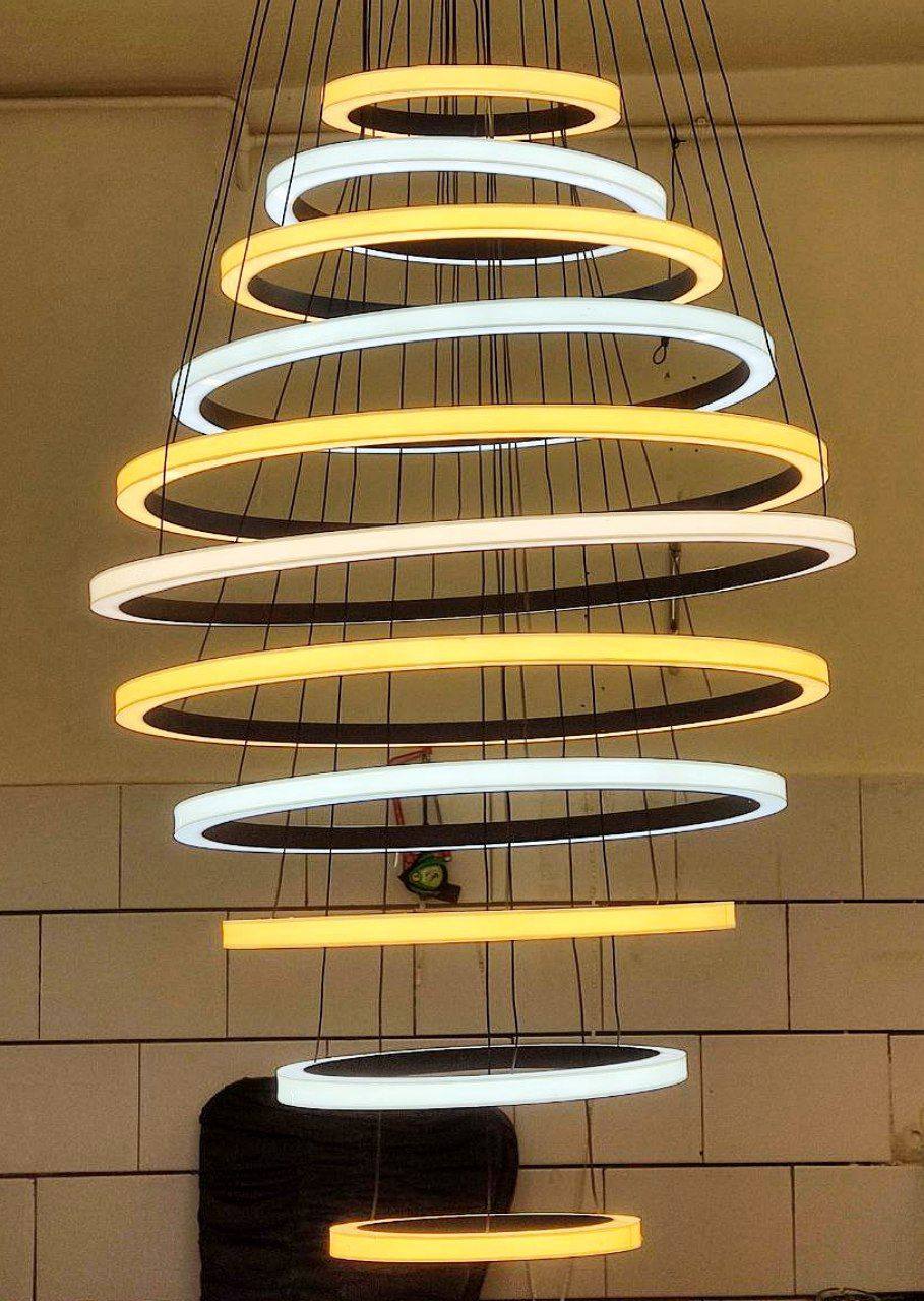 لوستر مدل حلقه ای مدرن که از حلقه هایی که از جنس آلومینیوم هستند استفاده شده است و تعداد حلقه ها طبق سفارش شما قابل تغییر میباشد